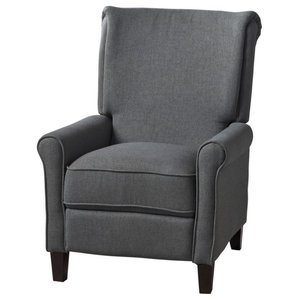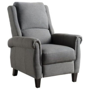 Harrah charcoal fabric recliner | Harrah Charcoal Fabric Upholstered Push Back Recliner With Scrolled Ar Furny Matter